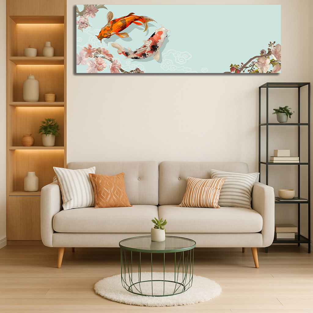 Beautiful Japanese Koi Fish Panoramic Canvas Wall Art Print