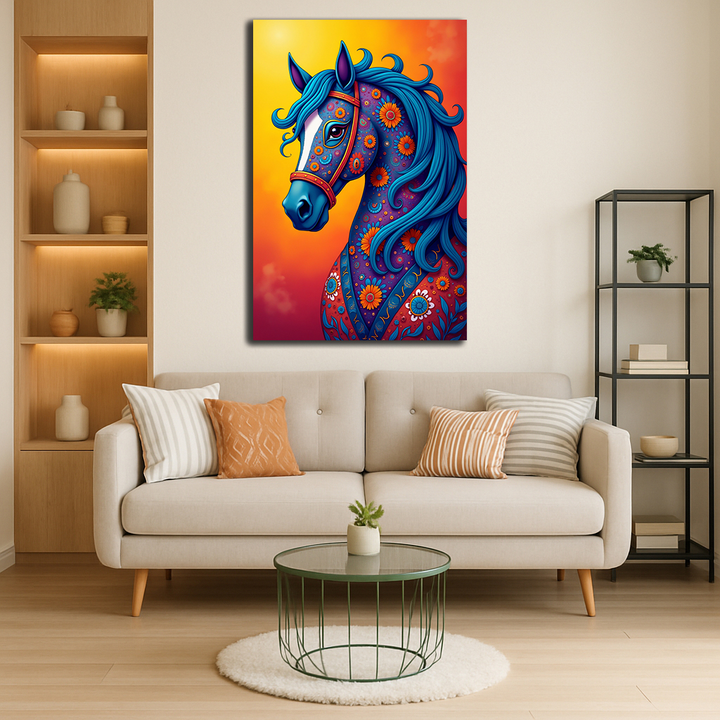 British Terminal Lucky 7 Horses Vastu Canvas Painting Wall Art For Home Decor