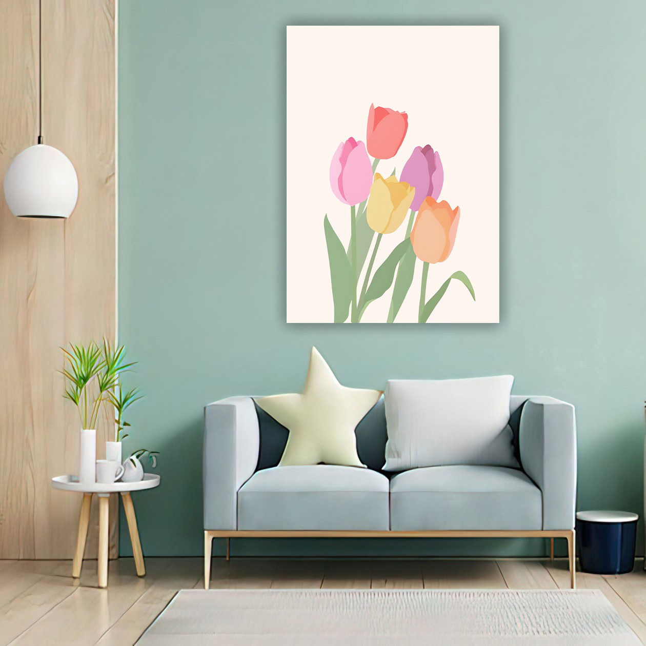 yellow and Pink tulip pattern with leaves Wall Art Poster