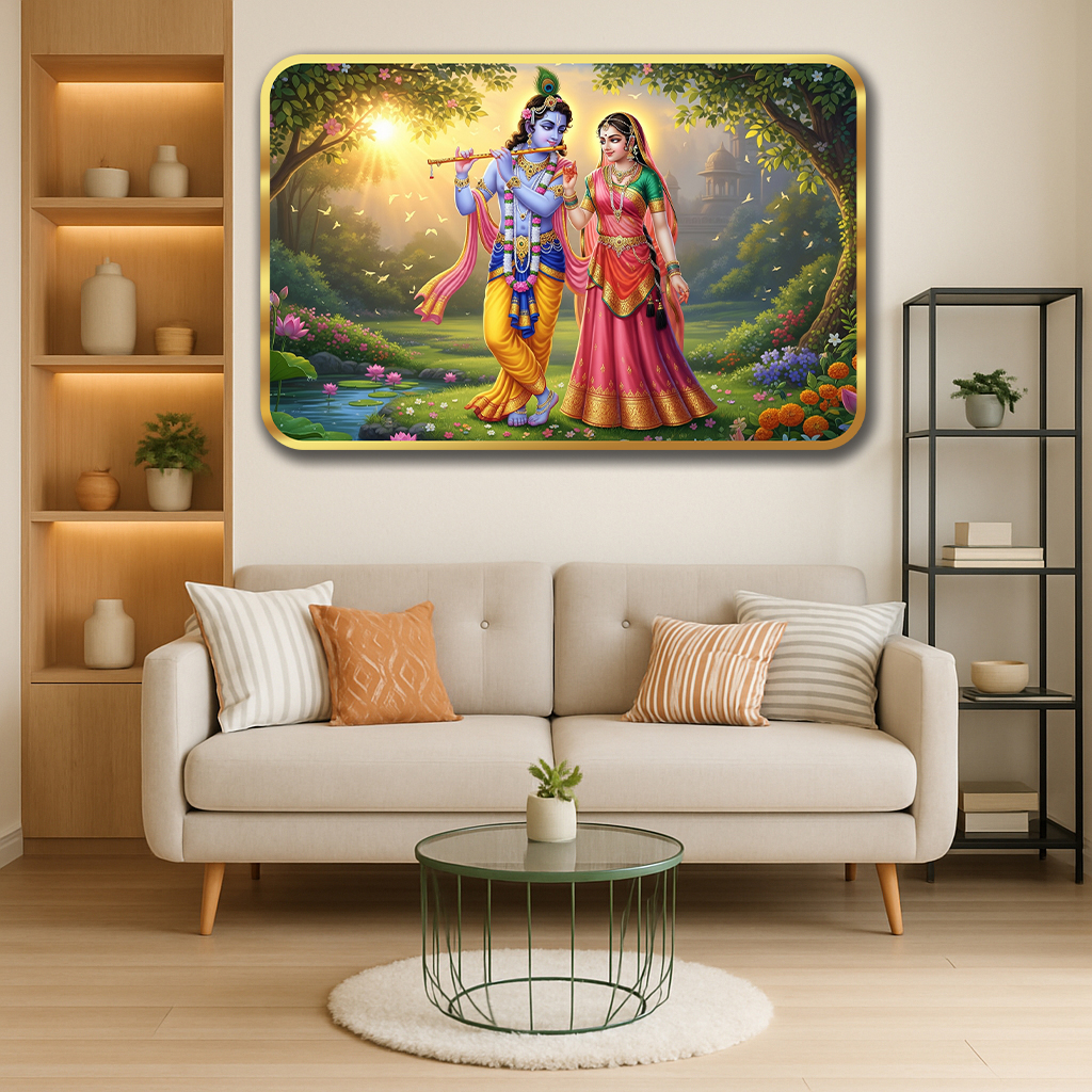 Shree Radhe Krishna Sparkle Golden Photo Frame