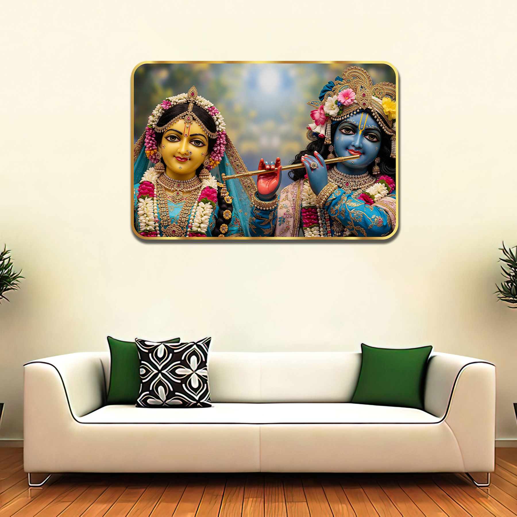 This Radha Krishna Madhubani wall art showcases the historic Indian art style, featuring intricate and vibrant designs. Crafted with care, it adds a touch of culture and beauty to any room. Experience the ancient story of love and devotion with this elegant and unique piece.