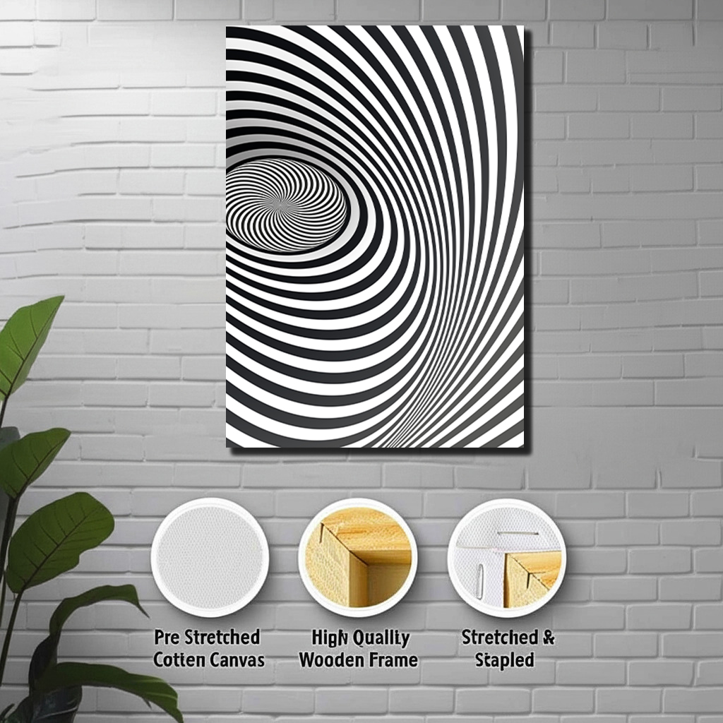 Be the first to review “Optical illusion spiral with black and white stripes Canvas Print Wall Art”
