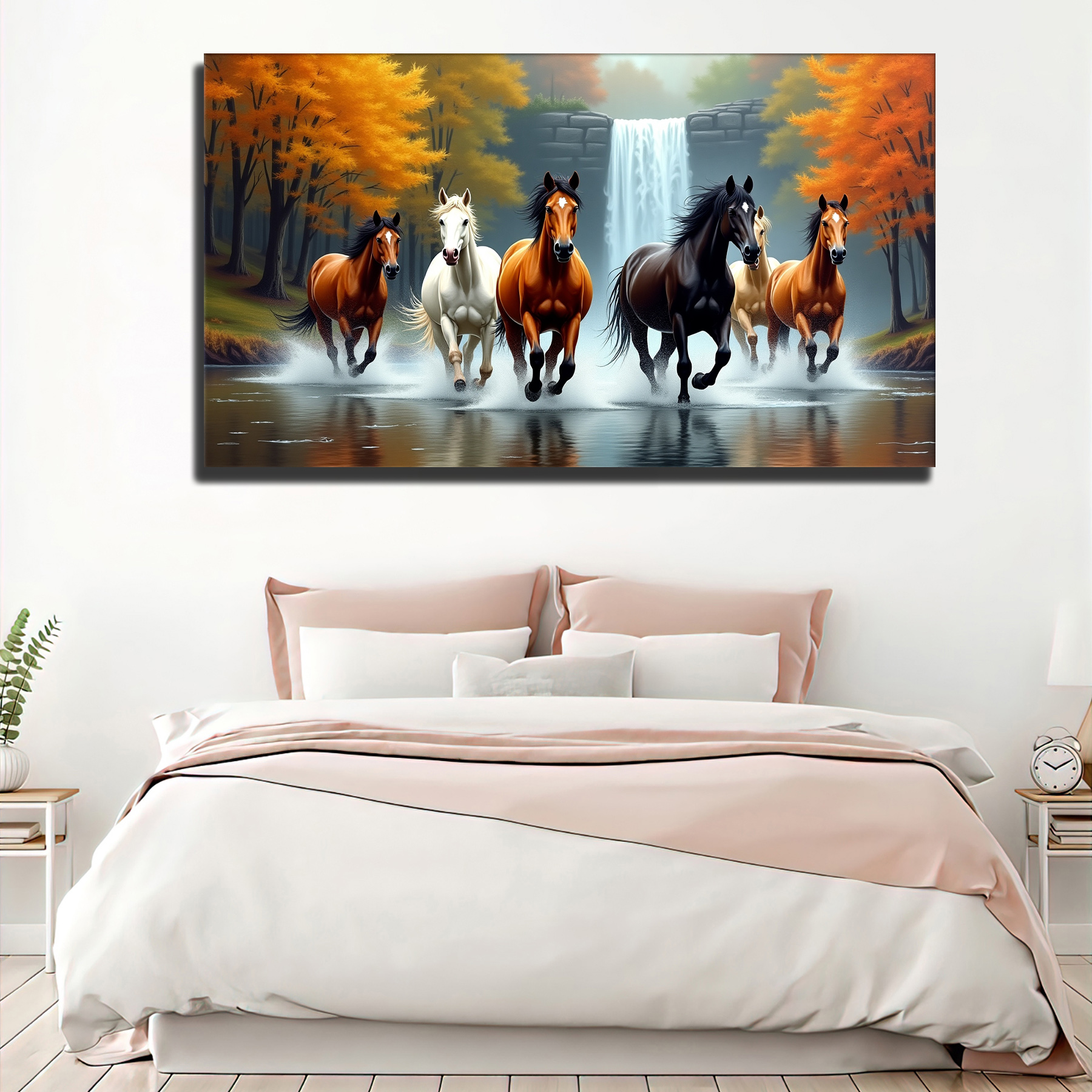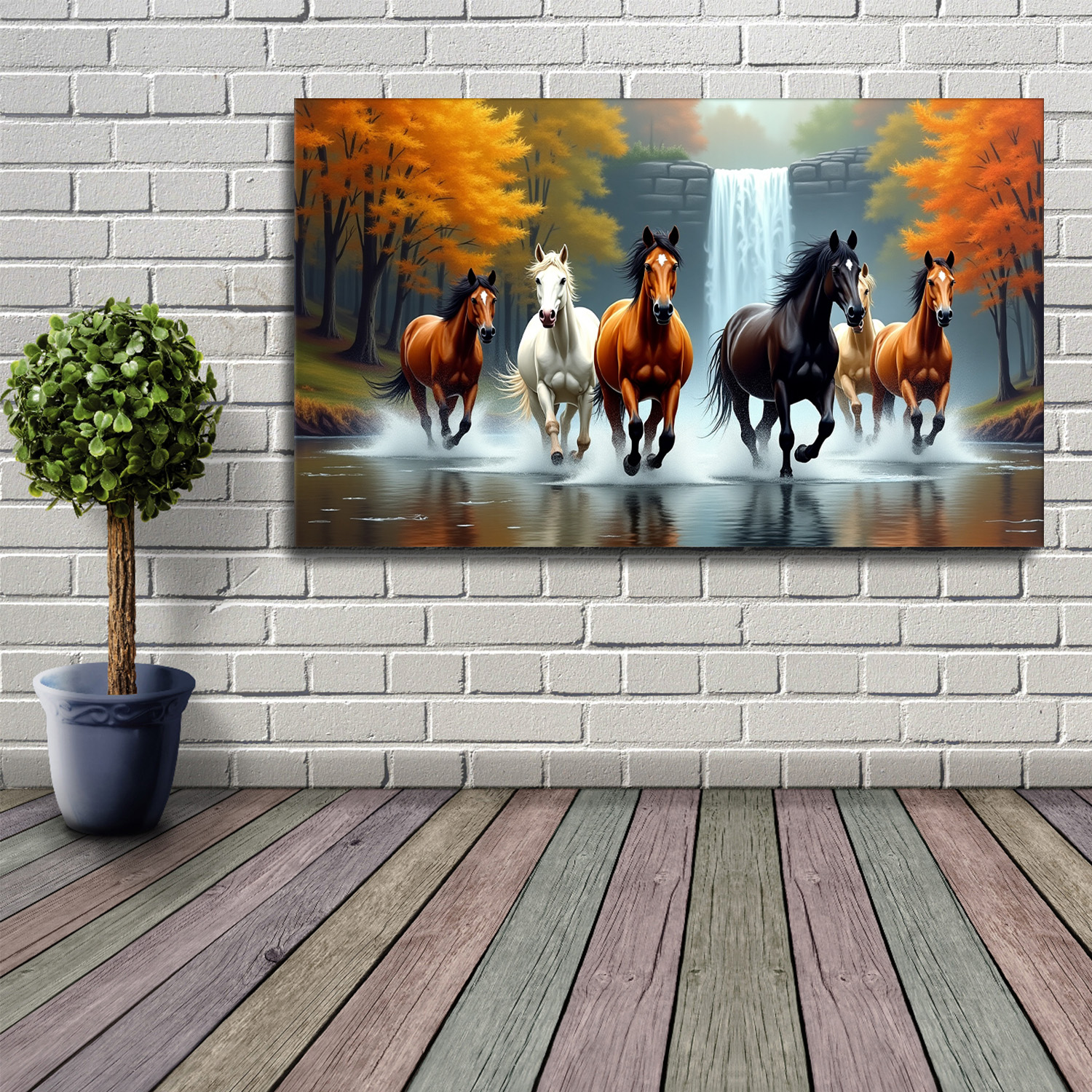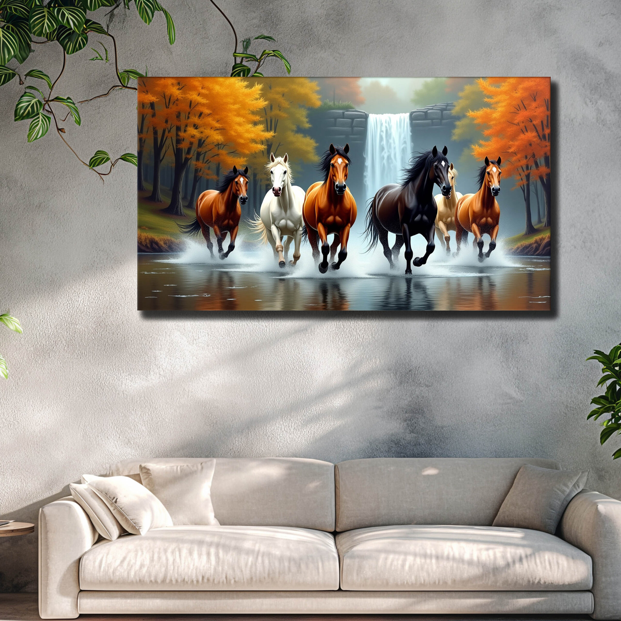 Seven Running Horses in Water Canvas Big Wall Art Painting