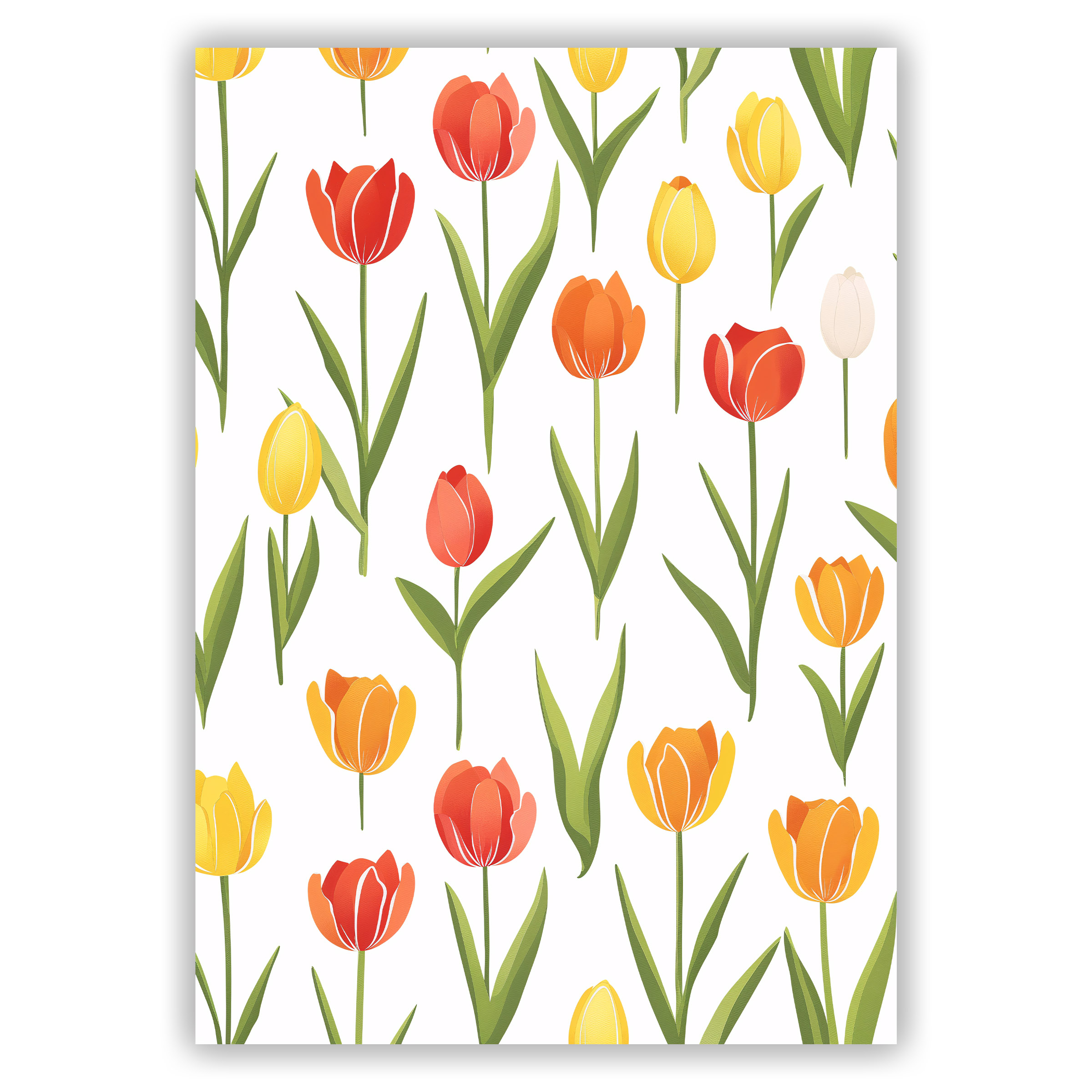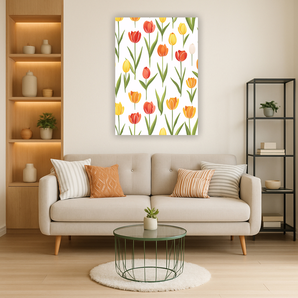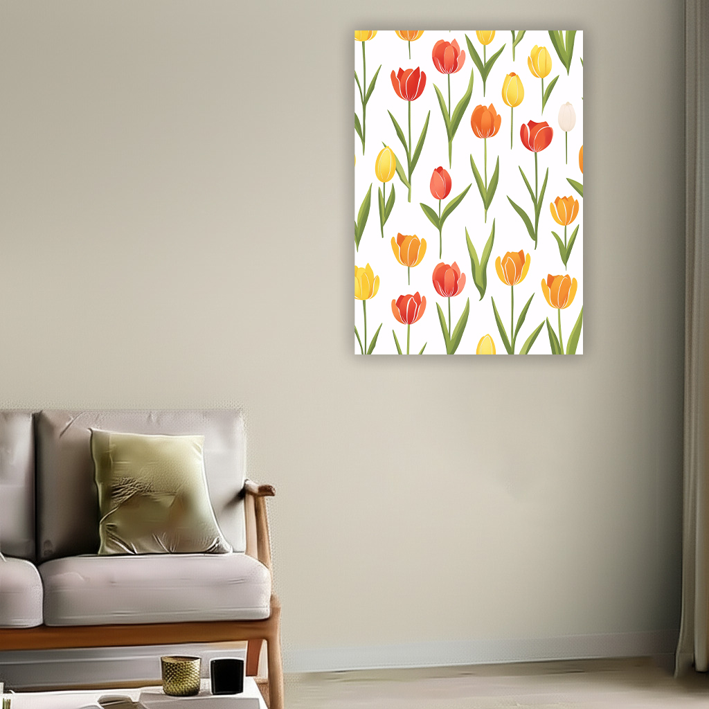 yellow and Pink tulip pattern with leaves Wall Art Poster