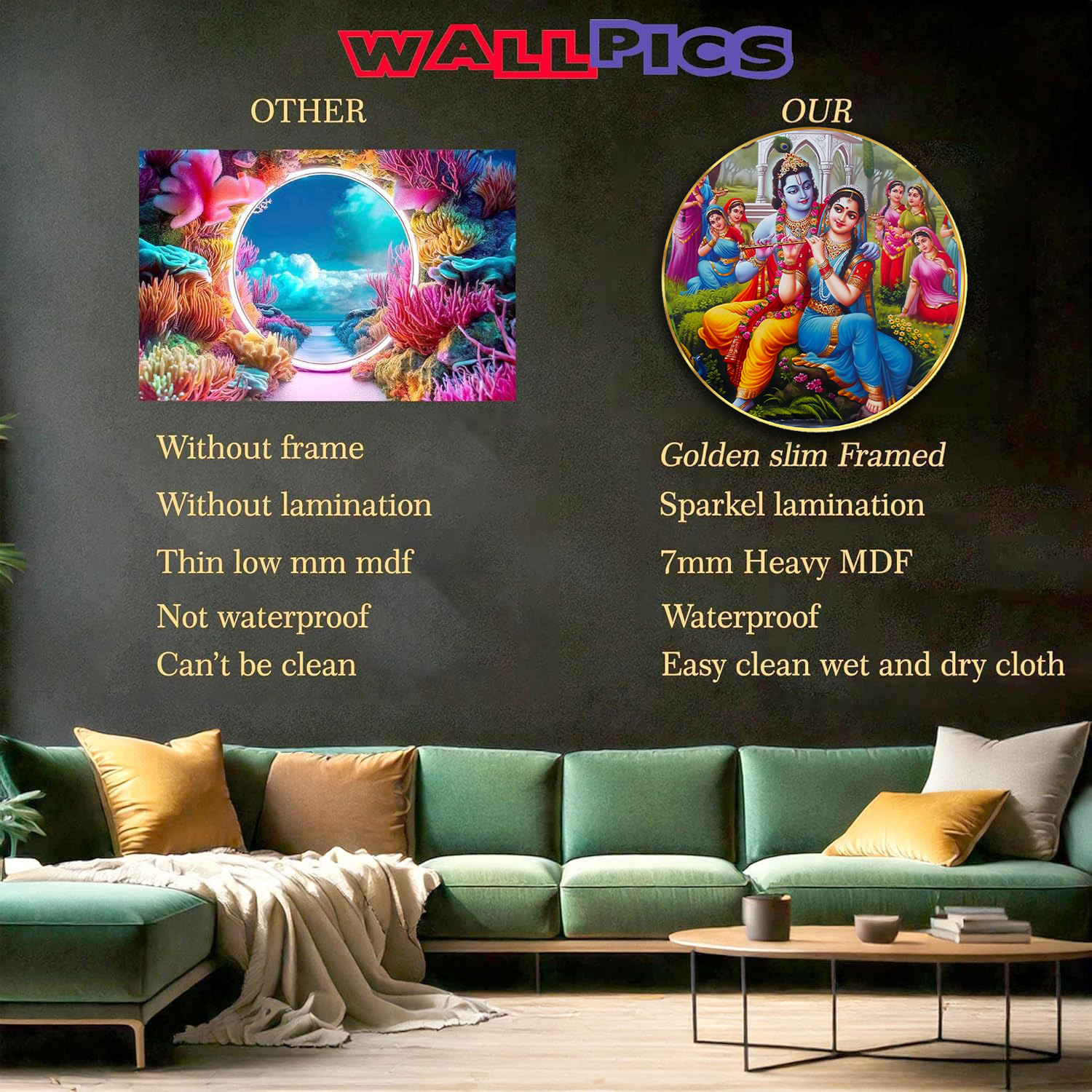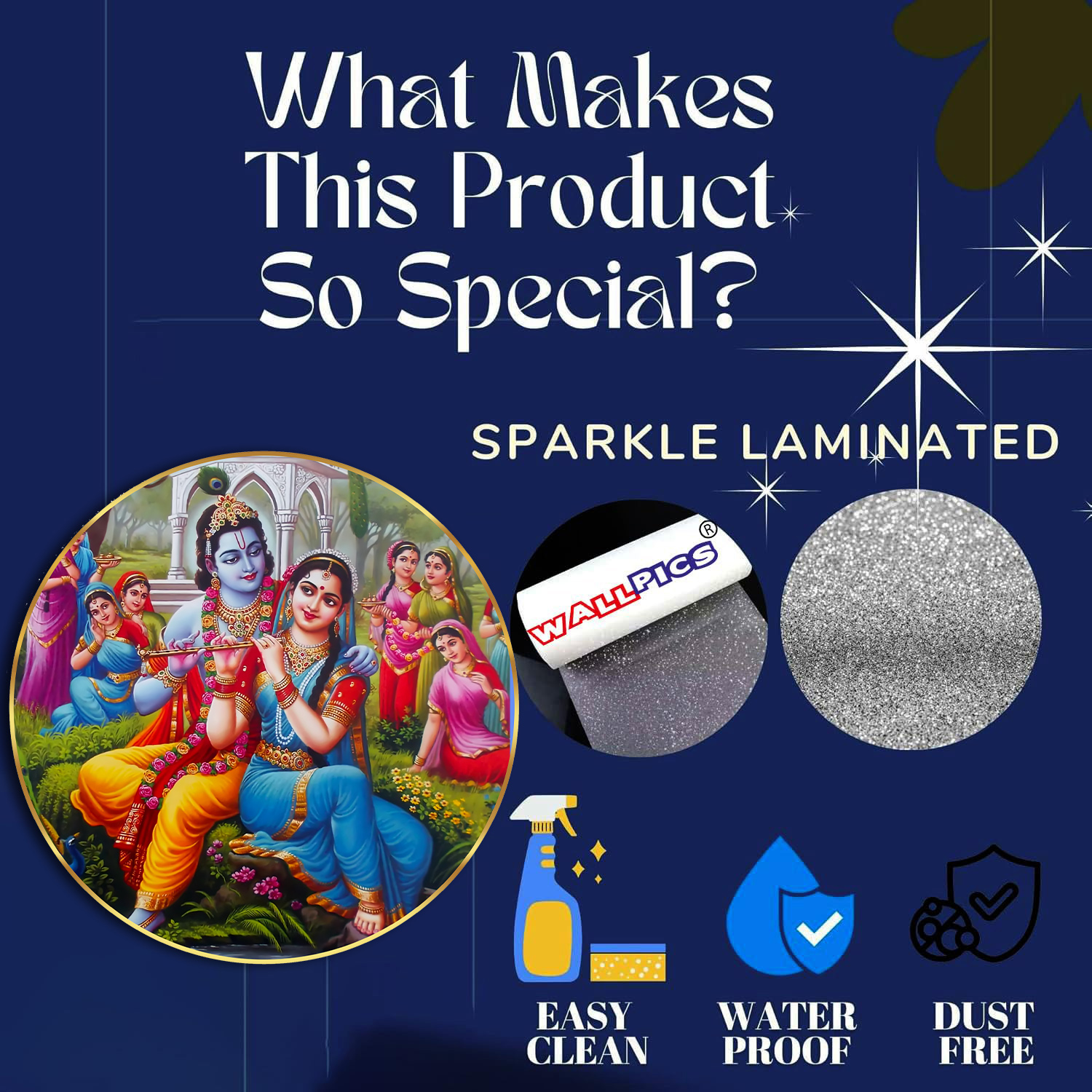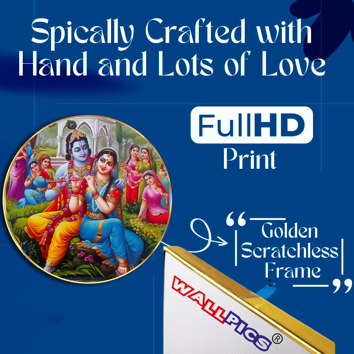 Radha Krishna Sparkle Golden Photo Frame