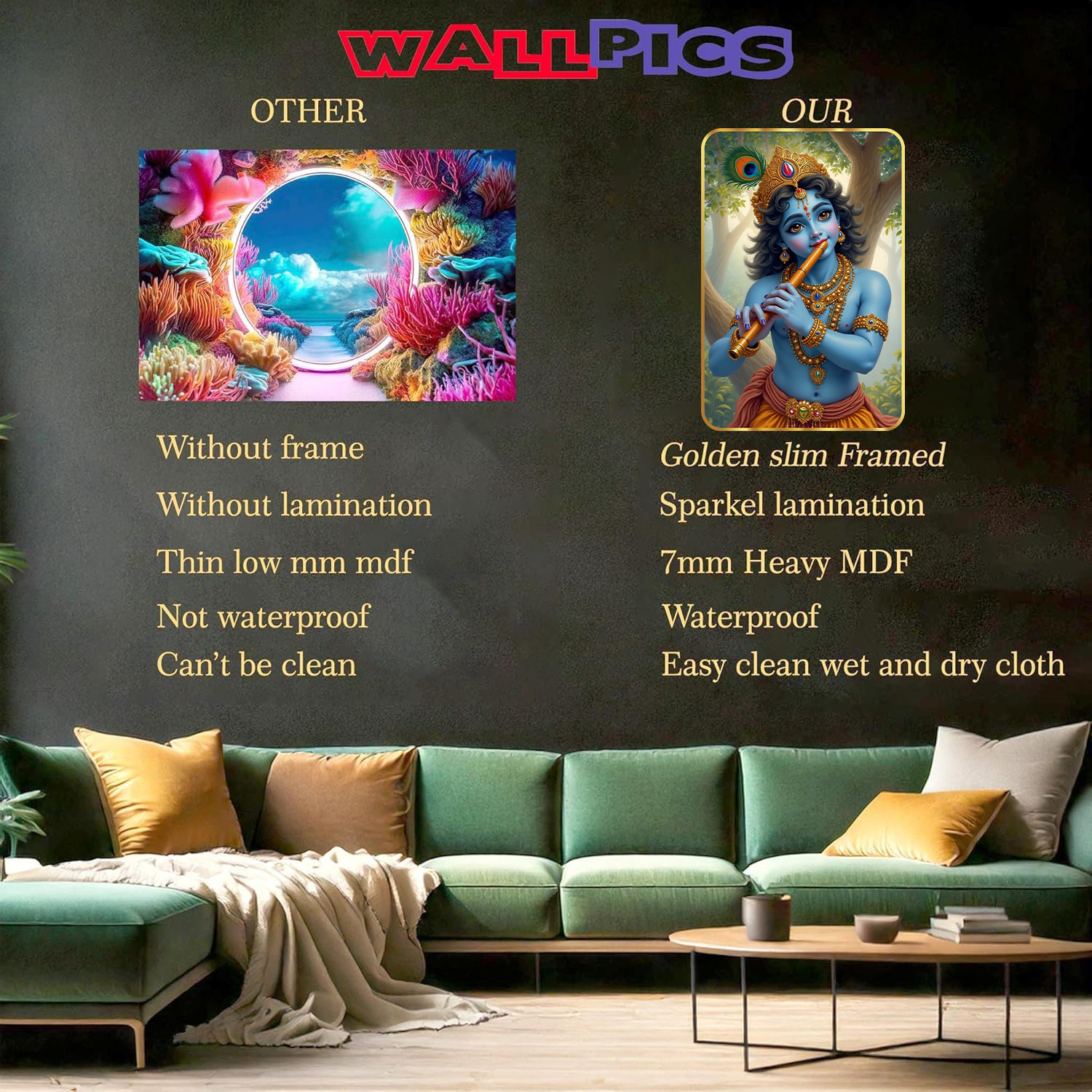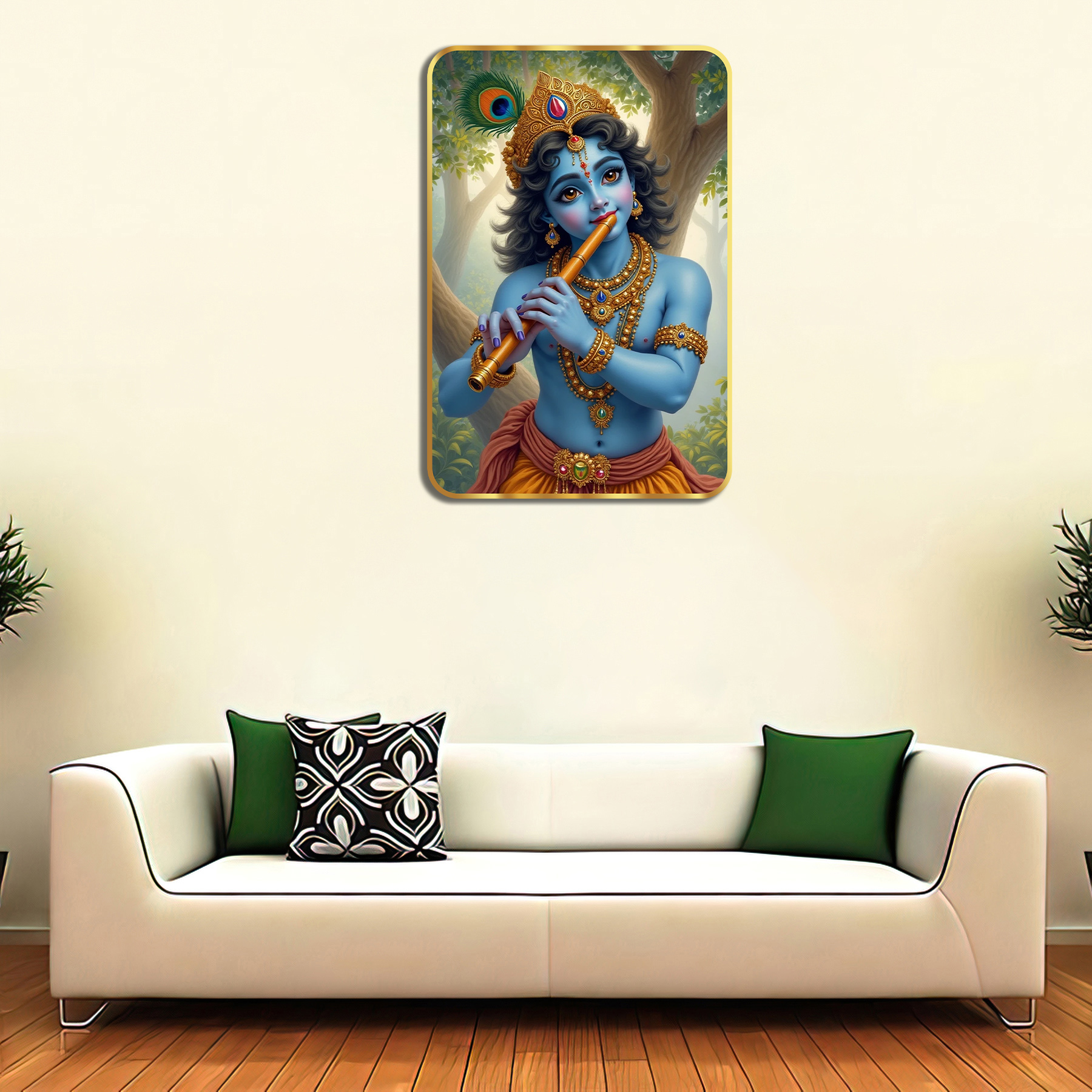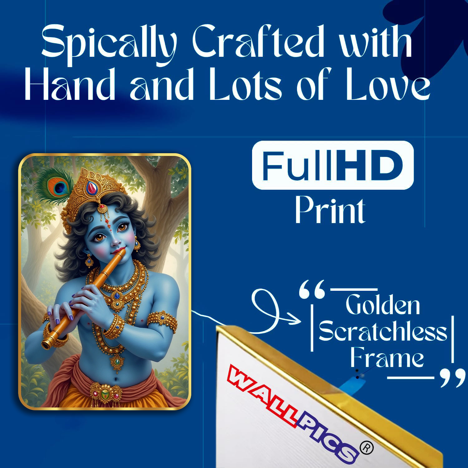 little Krishna Sparkle laminated Golden Frame