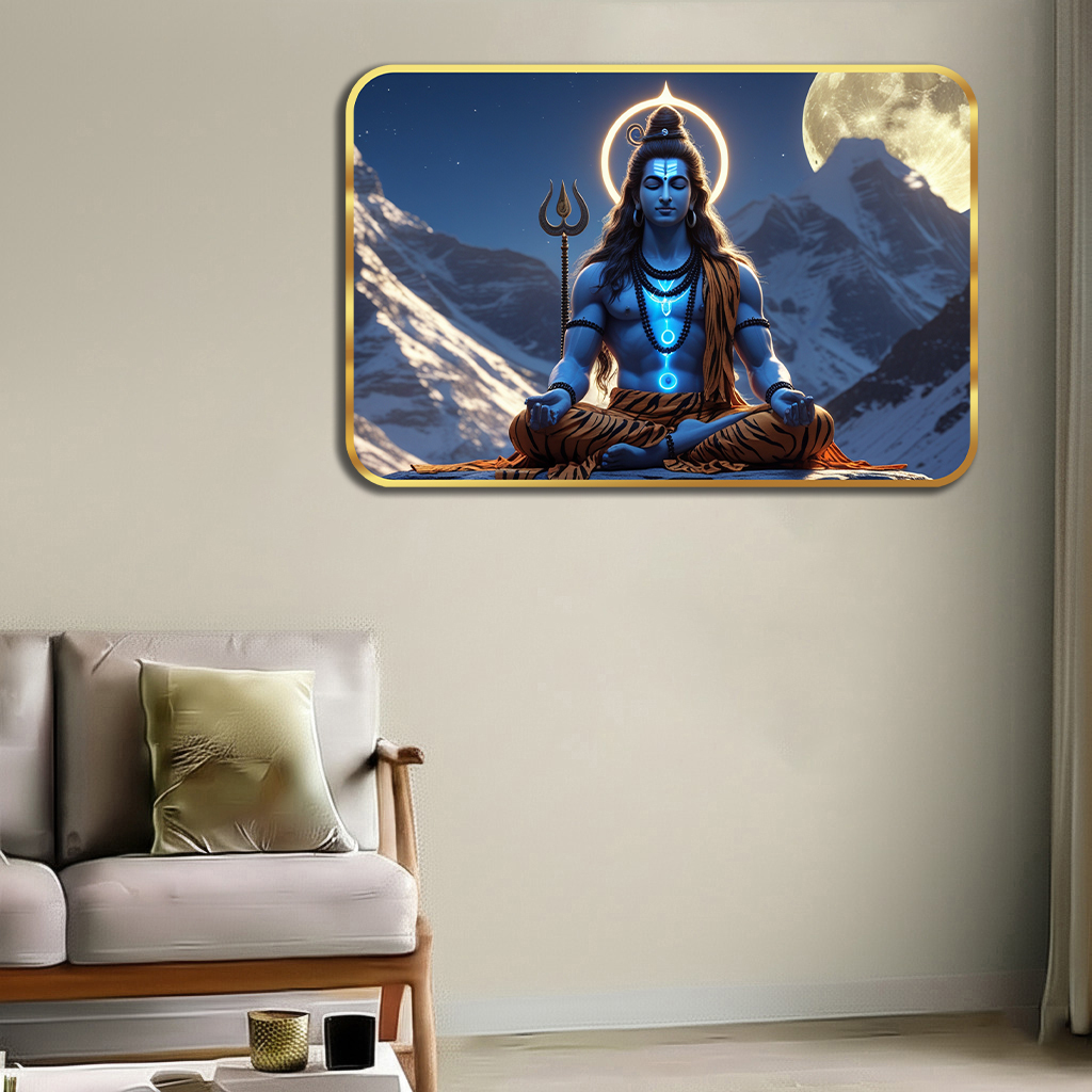Shree Shiv Parvati Sparkle Laminated Golden Frame