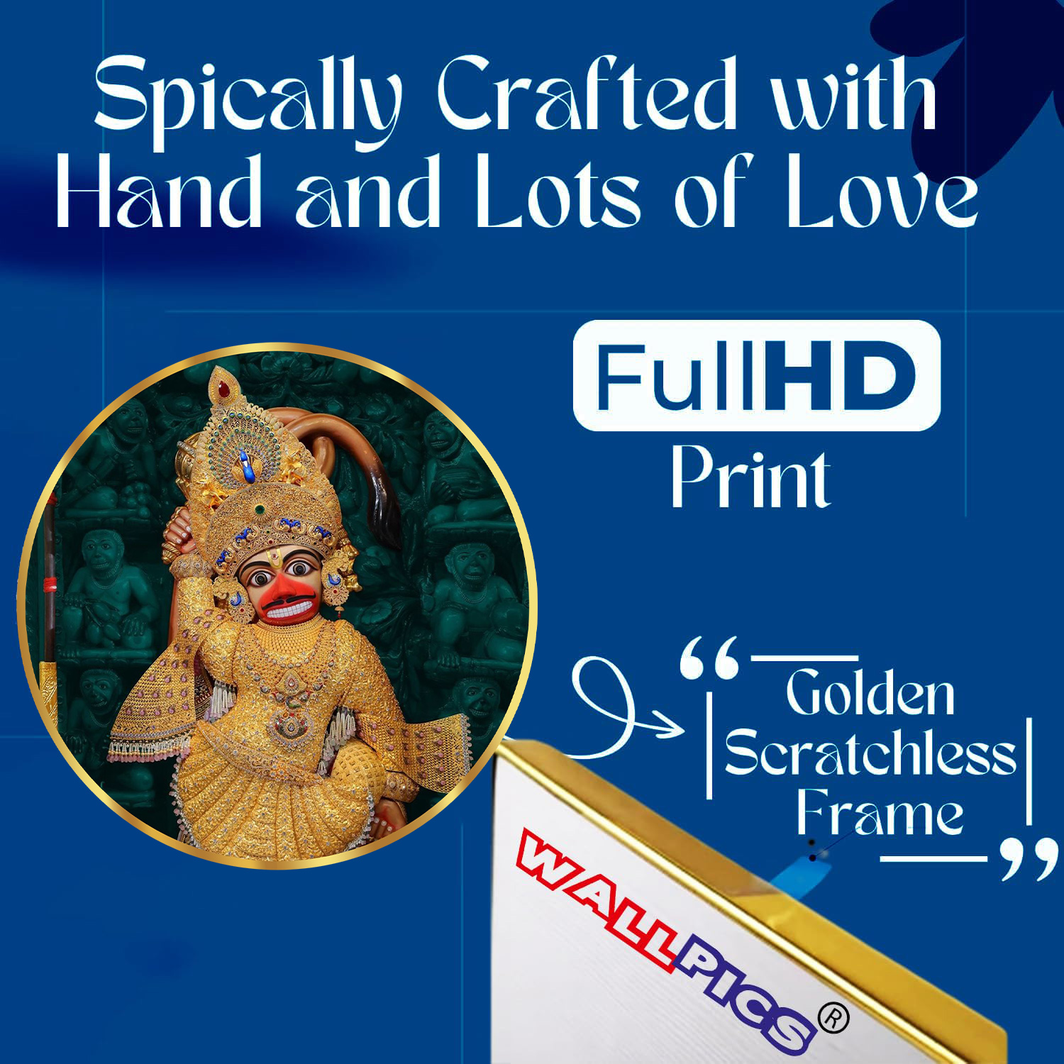 shree sarangpur hanuman ji sparkle lamination coated golden frame